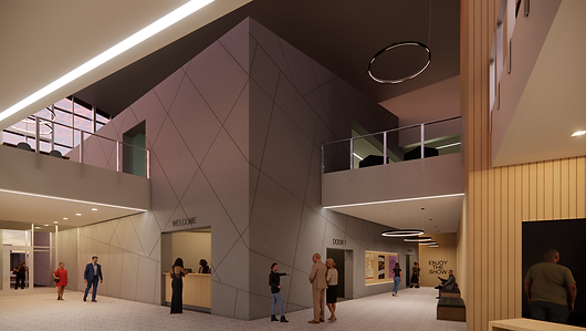 The starting form for the library adopts the "H" configuration found in other significant civic buildings in Williamsburg. The central bar of the "H" is used as grand circulation space, angled to reflect the shift in urban street planning outlined above. A sculptural feature element of the design, the theater in the northwest corner is also angled to further set it apart from the rest of the library and position it to face approaching vehicular traffic from the North